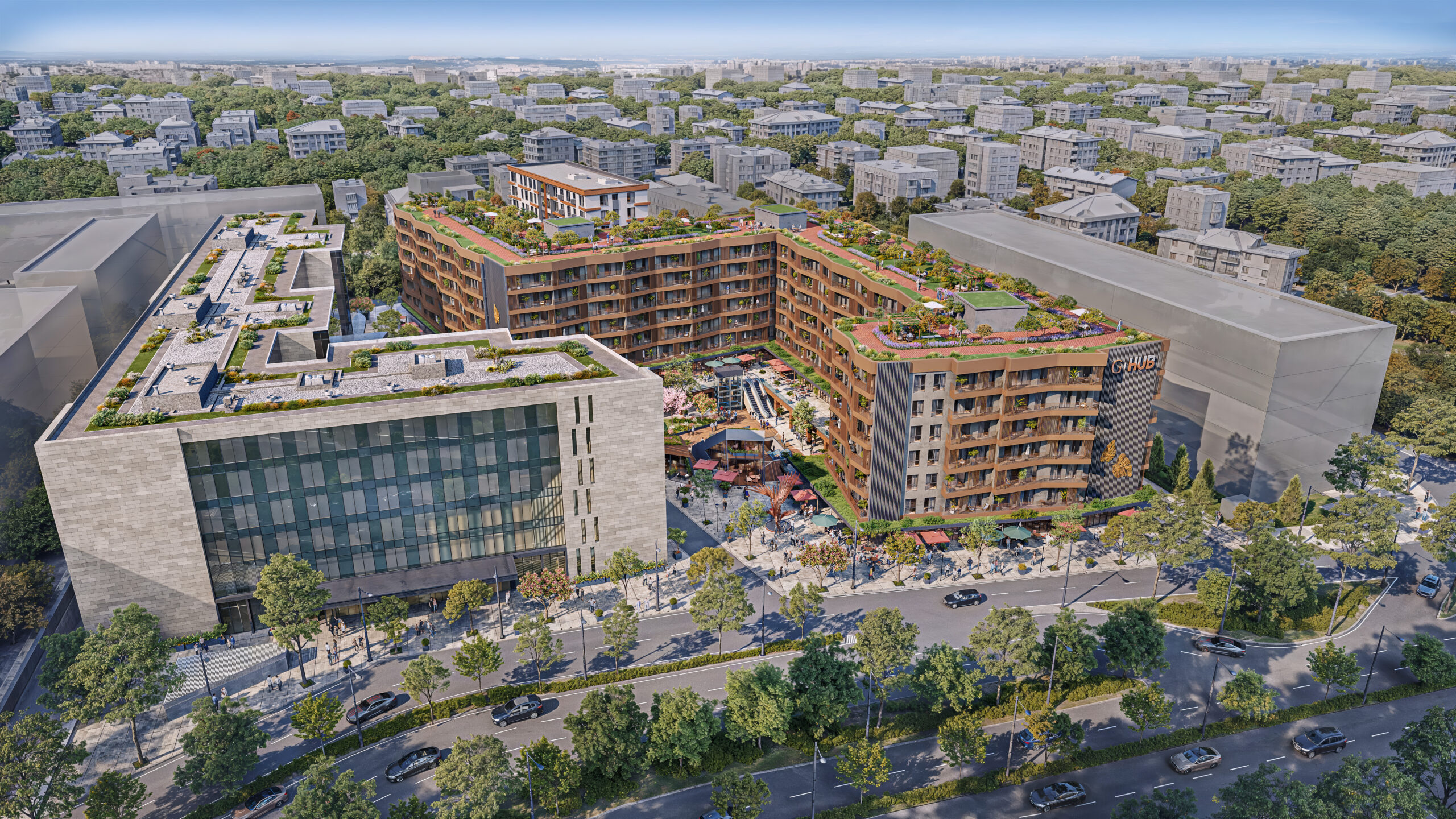 Projenin yanındaki Biruni Üniversite Hastanesi, 600 yatak kapasitesi, 100 yoğun bakım ünitesi ve ileri teknoloji sistemleriyle hizmet veriyor. G-HUB Medikal Rezidanslar, uzun süreli tedavi görenler ve sağlık seyahati yapanlar için konforlu yaşam alanları sunuyor.